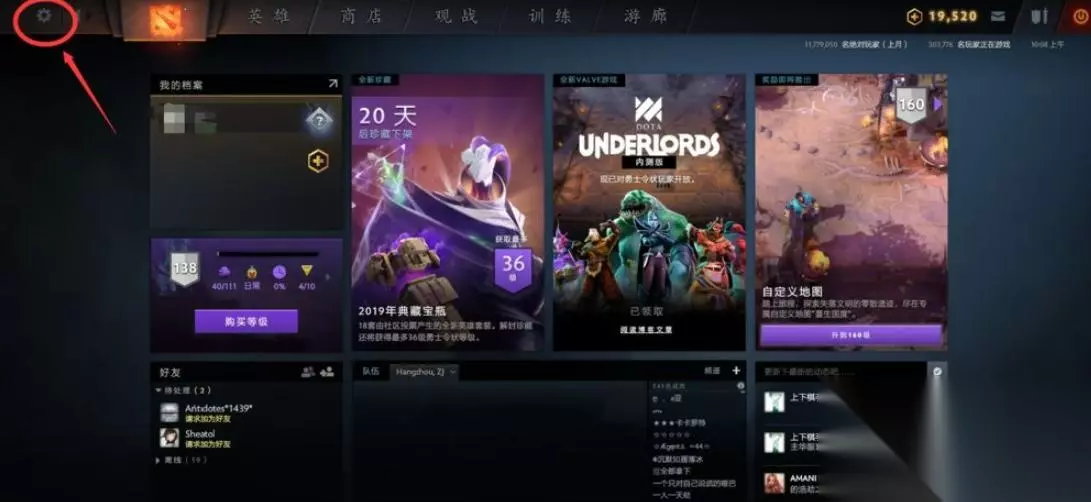 答案: 具体步骤如下:1、想要调整DOTA2游戏画质,我们需要在DOTA2界面中选择左上角的菜单设置。