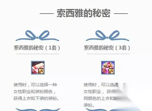 DNF索西雅的秘密套装外观和价格和属性介绍。索西雅性感内衣一共3套是官方最新推出的、小编都很喜欢。想必肯定有好多小伙伴也想知道DNF索西雅的秘密3套是不是帐号绑定?是不是好多小伙伴不知道、接下来小编为大家带来DNF索西雅的秘密3套能给其他角色吗:
