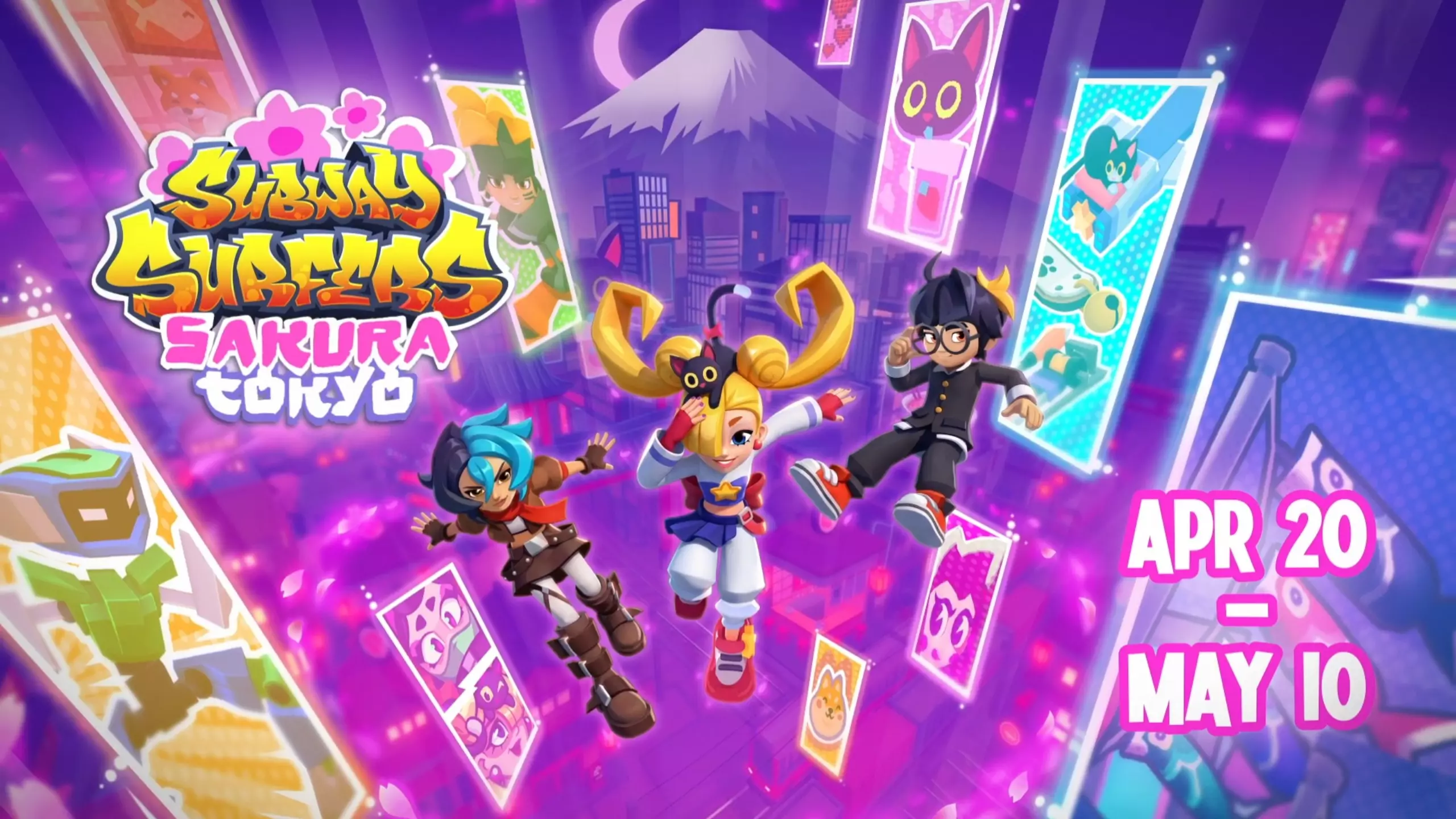 地铁跑酷国际服2026年4月20日更新樱花东京版本,游戏场景换上东京风格,还有新角色、滑板,同步上线季度冒险、每日冒险等任务玩法,玩家可在充满日式元素的赛道上跑酷收集金币。