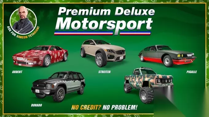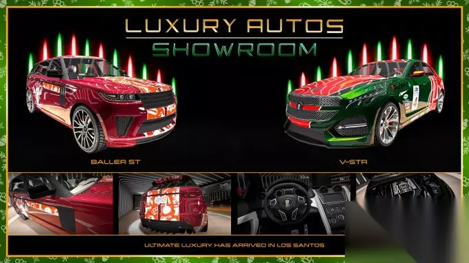 顶级豪华车业展厅 这个节日季的西米恩·耶塔瑞安感觉尤为大方,证据就是他最新一批覆盖各种汽车类型的载具,其中包括一款配有节庆涂装的载具以及最新发布的冒险家剑鱼。 冒险家剑鱼(SUV) 欧斯洛炽焰(经典跑车,六折),配有“放假啦”限时涂装 贝飞特斯垂特(跑车,六折) 威皮利雅塔(越野车,六折) 兰帕达缇皮卡乐(经典跑车,六折)