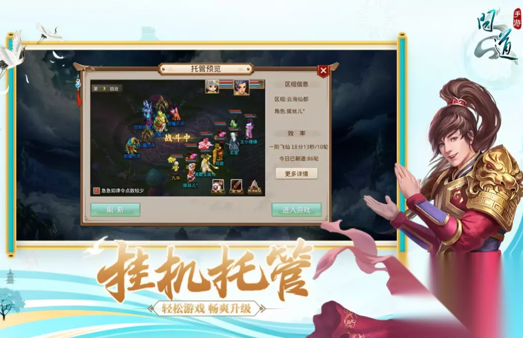 问道是一款移植自同名端游的国产回合制冒险游戏,精致的美术风格与原汁原味的剧情设计令人乐在其中,超萌坐骑以及客栈经营元素的加入让本作更具可玩性,朴实的国风背景和古色古香的角色造型也给人留下了深刻印象,挂机托管的回合制战斗方式可以让你尽情享受回合制游戏的魅力,问道这款古风手游在各方面都跟梦幻西游类似。 扫码下载该游戏 高速下载 普通下载 优先233乐园APP下载 类似梦幻手游的移动端游戏小编只找到两个,再介绍三款可玩性很高的回合制神作给大家吧。 3、《长安幻想》
