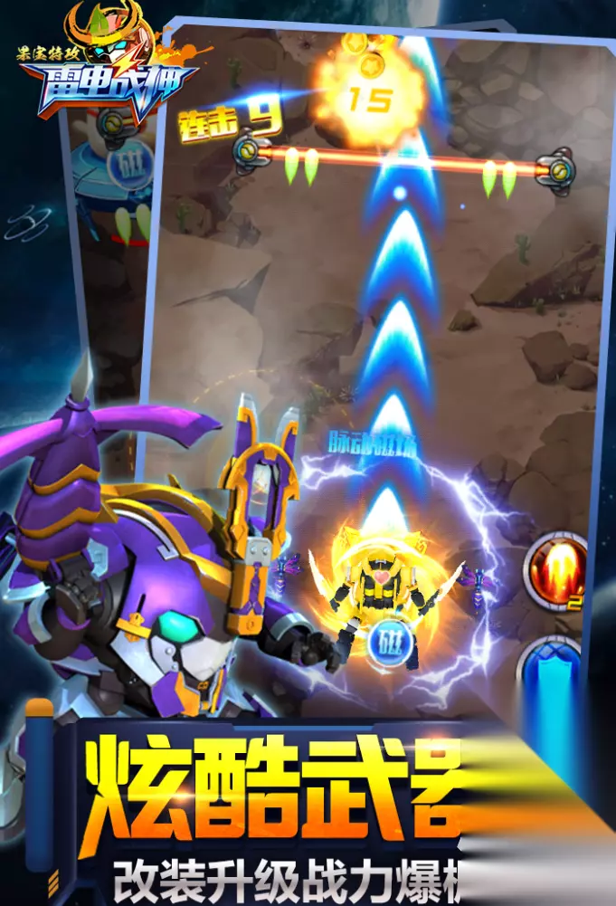 喜欢果宝特工系类机甲对战的小伙伴们可要注意了,《果宝特攻4机甲战神》是一款3D类型的机甲对战游戏,在这款游戏里面玩家将有机会体验到动漫果宝特攻当中的所有果宝战甲。起初在新手选择角色的时候,玩家们只有三位男主角进行选择,它们都有着各自的能力,例如陆小果擅长远程消耗,香橙战宝攻击强劲等优势。并且这些机甲都有着各自的进阶形态,玩家每次通过新的关卡都能够获取到金币,这些金币可以在系统界面用来强化自己的战甲。 手机扫码下载233乐园APP预约 预约订阅最新动态 优先233乐园APP下载 7、《果宝特攻雷电战神》