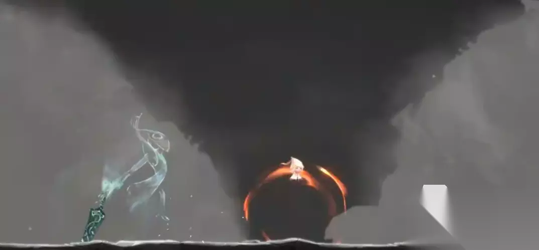 然后就是剑灵的主要技能,召唤各种方位的飞剑,有时候飞剑会有指示标志,玩家只要往后一躲就能规避伤害,但有时候剑灵回向空中释放多道剑雨,几乎是全屏幕覆盖的,玩家很难躲避,但是吃一剑还是没有问题的。