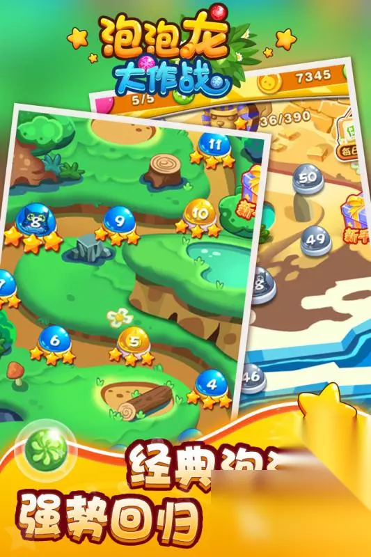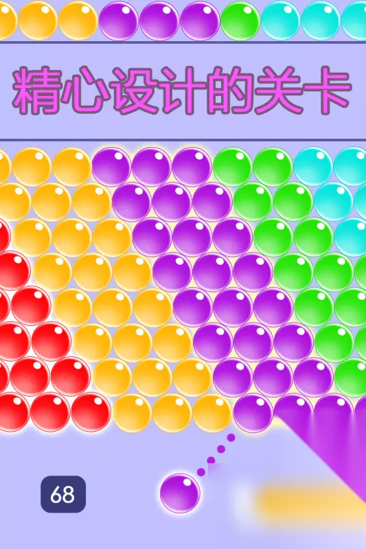 用一颗泡泡打开节奏空间,发射轨道控制精准,弹道反弹有迹可循。泡泡排列紧密,上方压线持续下降。命中瞬间色彩迸裂,爆裂音效干脆利落。道具系统融入节奏,消除方式产生变化。部分泡泡带特殊标记,命中后触发连锁反应。背景画面经过重绘,色彩过渡自然柔和。指尖滑动定位,拖拽反馈清晰明确。 高速下载 普通下载 优先233乐园APP下载 2、《泡泡龙消消乐》