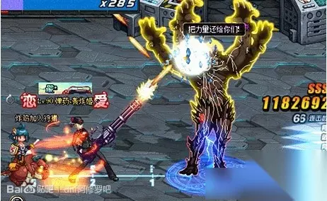 破防触发条件:一定的hit(连击)数目,具体多少hit待定。 破防标志: 台词:光明……分散……以及老爷子身上的金光消失 老爷子光阶段,大体有如下技能: (我在你的眼中看到了恐惧)套上大罩子→震地板→发射激光→(吵死了!)给某个玩家套上技能限定罩子→跳到某个玩家面前甩巴掌→发射小球→洲际导弹→给玩家套上读条(定时炸弹)→(把力量还给你们)给自己套上一个反伤罩→发射小球→发射洲际导弹→跳到一个玩家面前甩巴掌→重新来过