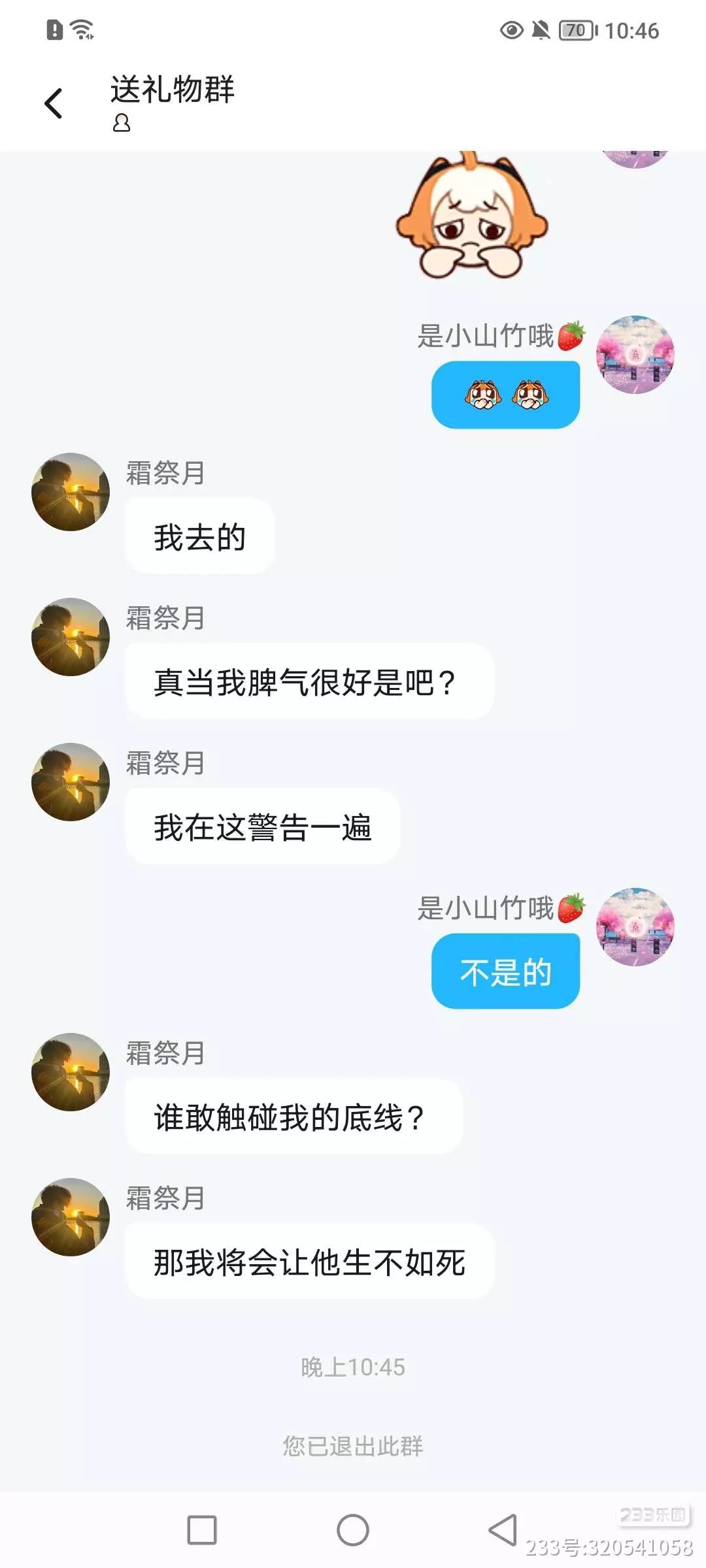 请回你的底线是什么?在群里面骂人,还有理了?居然下面还说谁敢触碰我的底线,我让他生不如死?