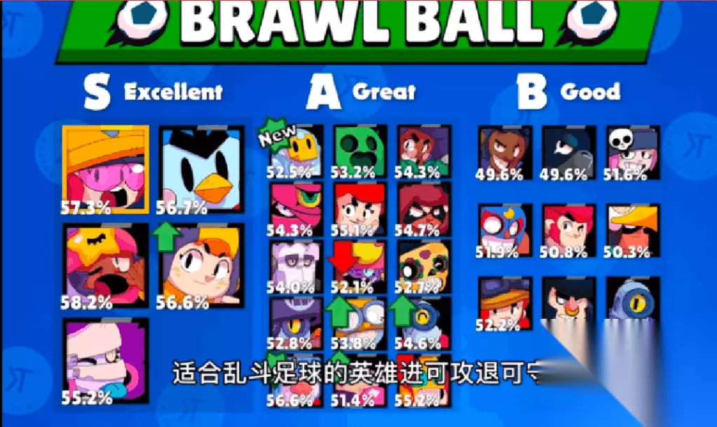 该地图内最强的角色目前是P先生,凭借着大招不断召唤出机械助手可以持续不断的骚扰敌人。此外罗莎由于自身拥有极高的坦度在该地图中也有着不错的表现,所以英雄的强度是与稀有度没有太大的关系。 乱斗足球