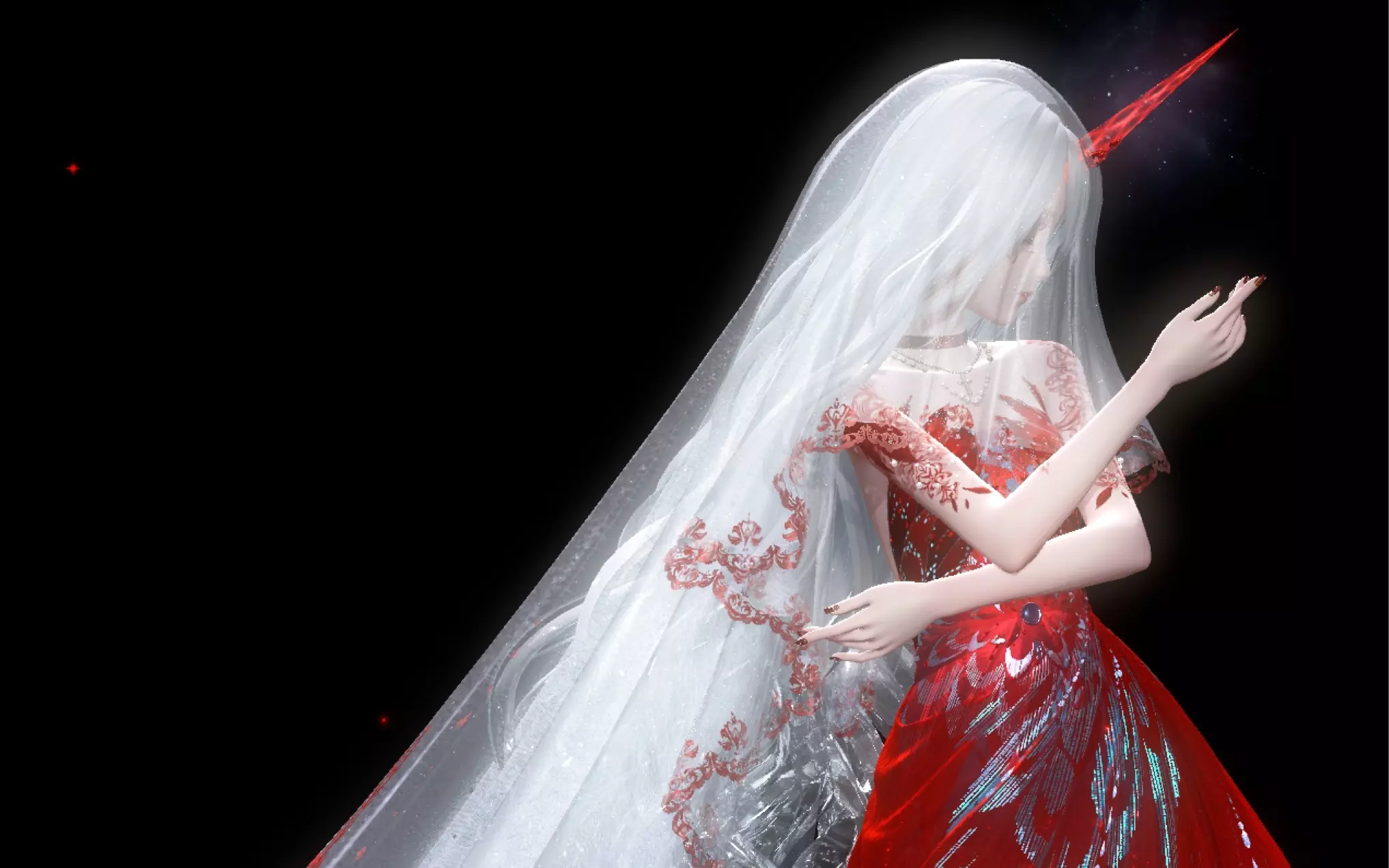 用3万元的电脑打开《无限暖暖》,展示了游戏里一款华丽精致的礼服,这款礼服细节满满,刺绣、珠宝装饰十分精美,同时又带着哀伤与禁锢的氛围感,尽显游戏服饰的高品质。