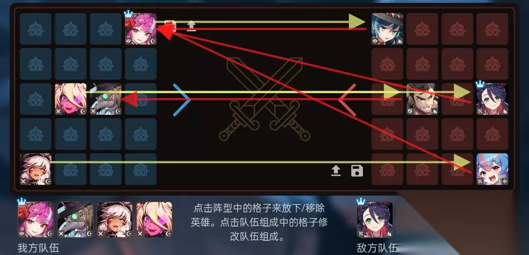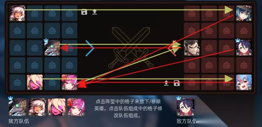 坎特伯雷公主与骑士唤醒冠军之剑的奇幻冒险44暗投解纯土公式化教程如下: 虽然目前是公主和水狐二分天下的时代,但中低分段依旧有大量的纯土队防守,而暗投是解纯土最合适的队伍,没有之一! 公式化解阵目的是省心、省时、方便抄作业,不是最强思路! 1.索敌目标: 老登→土盾,暗刀→副射手/主射手(优先级低),暗狼→辅助/副射手(暗狼别索主射手和土盾) 土盾→老登,其他3人→吸血鬼 索敌通过更改我方摆位,以及队伍顺序来调整。 2.摆位原则: 暗狼→最后列靠近索敌目标排,吸血鬼→第1列距暗狼对角角落,老登→第2列靠近中间排(打主控土盾则第1列),暗刀→任意只要不影响索敌 目的是通过吸血鬼将敌方后排聚拢靠前,让老登和暗刀尽可能打aoe,同时暗狼在更安全位置输出。 3.队伍顺序: 土盾前置→登投(注意暗狼和暗刀顺序不要影响索敌) 副射手前置→刀投 主射手/辅助前置→鬼投 队伍顺序选择是由索敌决定的。 4.装备选择: 老登/暗刀主控→熊猫雕像,输出卡,解瑜娜带炎龙王,解老头带大地(下位都是魔镜) 老登/暗刀挂件→熊猫雕像,双防卡,大地/殉道/熊猫胸针 吸血鬼主控→坦杀/母舰,输出卡,炎龙王/魔镜 吸血鬼挂件→熊猫雕像,输出卡,大地/熊猫胸针 暗狼→坦杀/母舰,输出卡,熊猫胸针/狙击镜 5.例图
