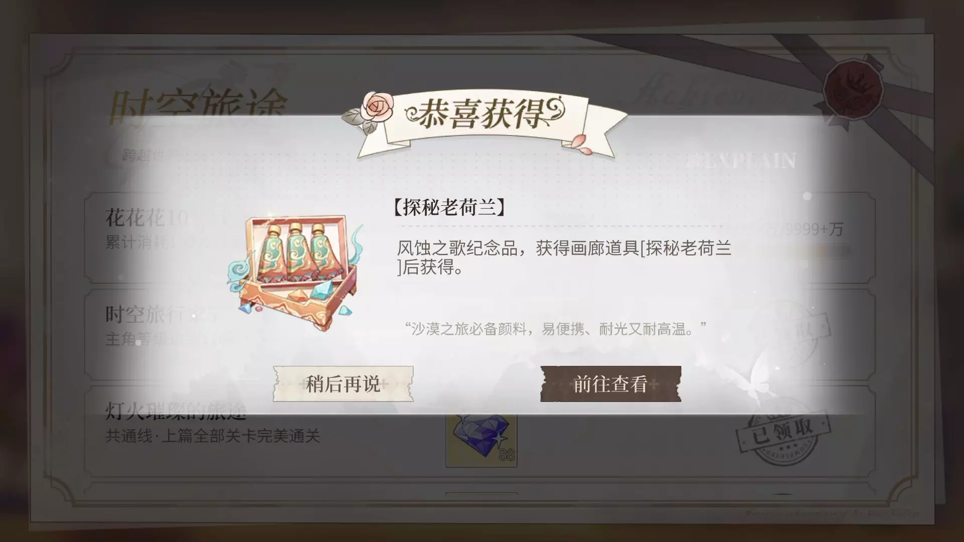【前瞻预告·风蚀之歌】 一次意外的委托, 一支神秘的曲调, 桑缇,这个名字将带来异域的邀请, 以及五个被风沙掩埋的,古老的神明传言…… ※《时空中的绘旅人》全新…