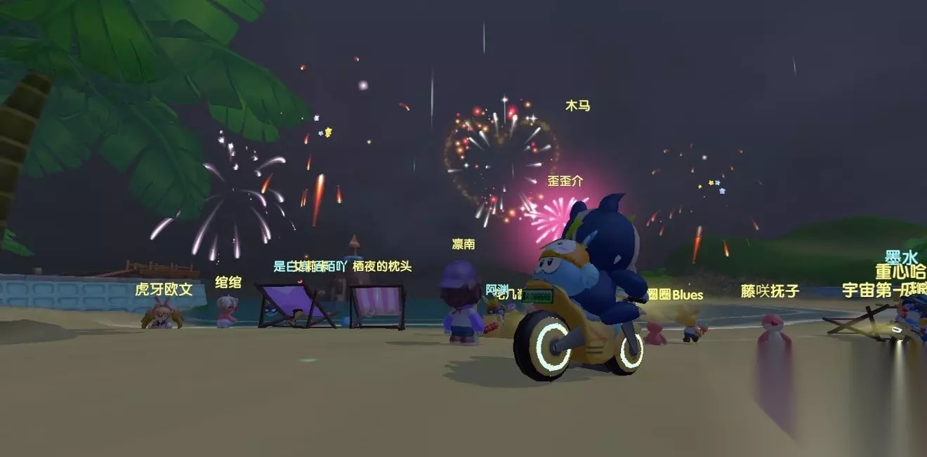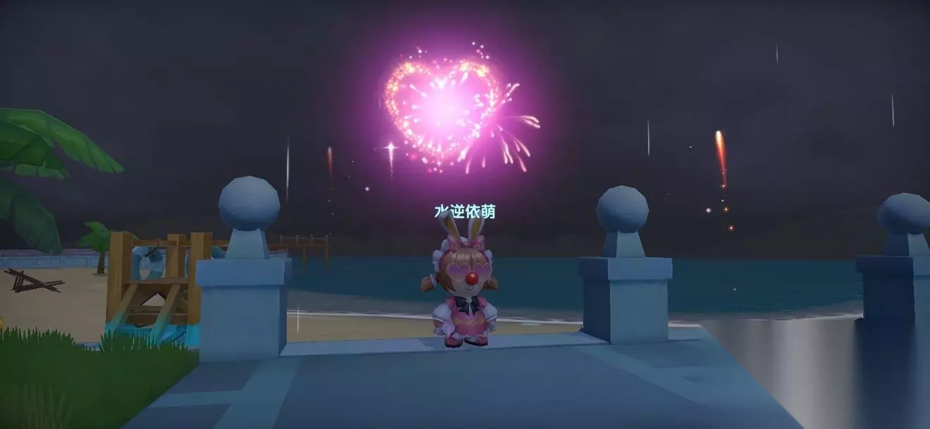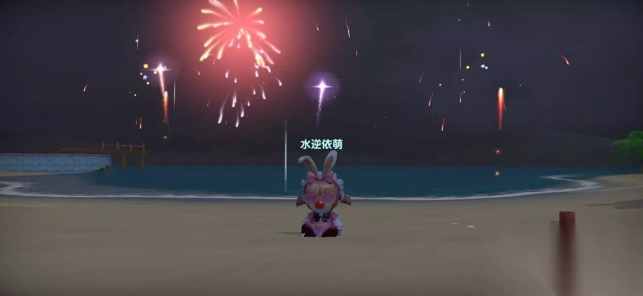 二、玩法介绍 我们找到海滩烟花秀的位置后就可以进入场景了,此时我们就可以找到这些烟花就进行释放了,当然你也可以把烟花扔给朋友玩家,特效也是很不错的。