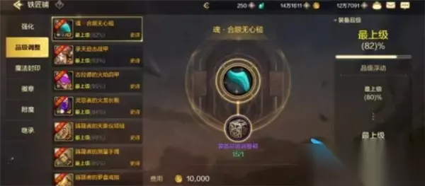 5.选择要调整的装备: 接下来,系统会引导你选择需要进行品级调整的装备。请确保选中的装备符合使用条件(例如,等级和品质)。 6.确认品级调整: 选中目标装备后,点击右下方的“品级调整”按钮。系统将进行品级提升,并显示调整后的装备属性。