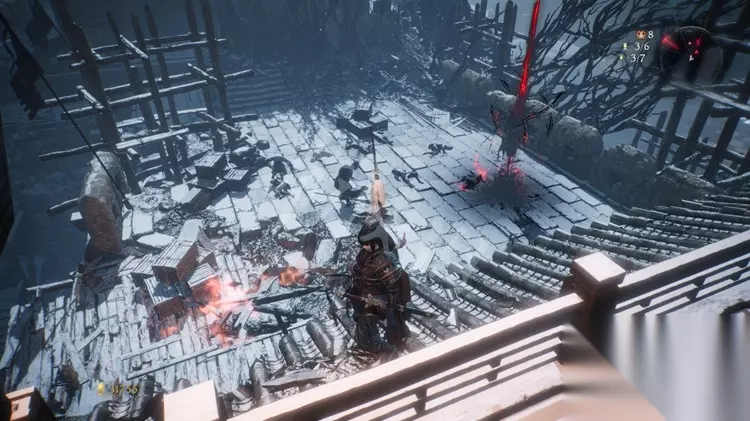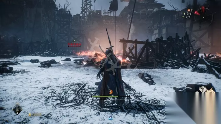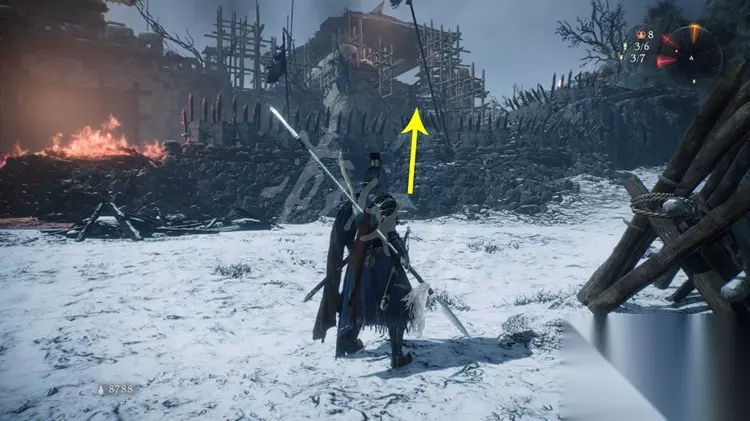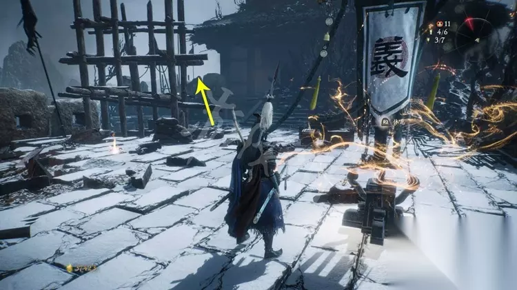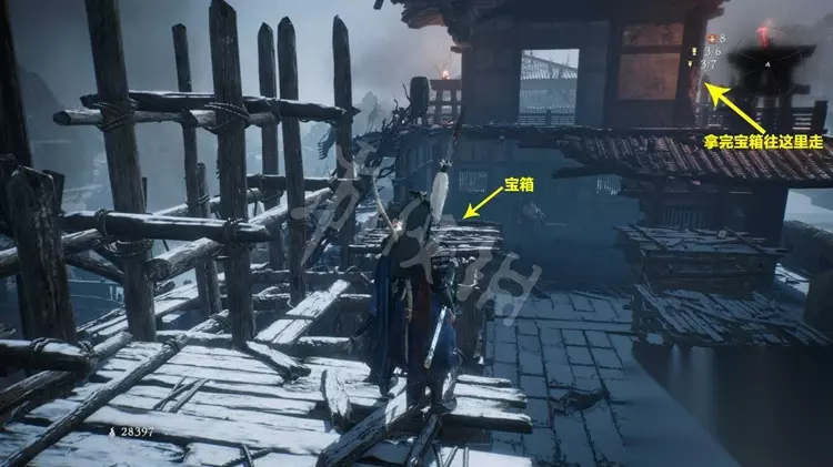 牙旗4: 之后能够跳到房子的二层绕往日,处理掉二层的巫士。 接着处理下方的怪物后打开牙旗点。