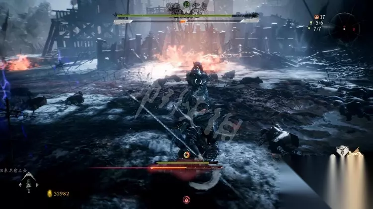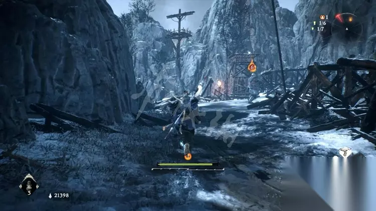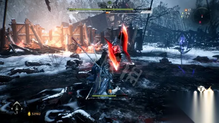 往前走刀路口,不期而遇一个巨斧兵,留心他的大部分进攻为多段连击,打的时刻不要贪刀。