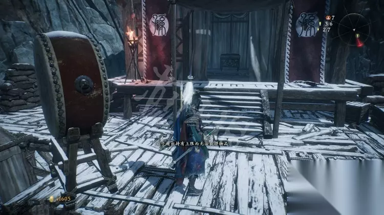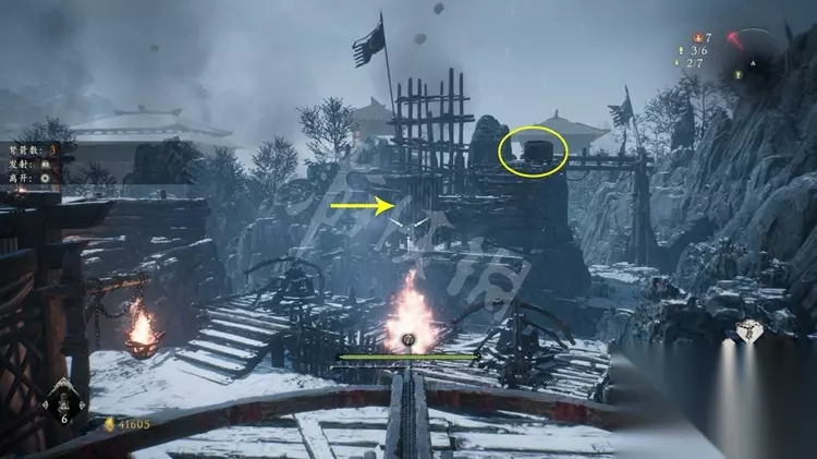 如下图,对准并射击劈面涂着白漆的木板能够破坏。之后跳上去开启宝箱,内部是一个龙脉精华。