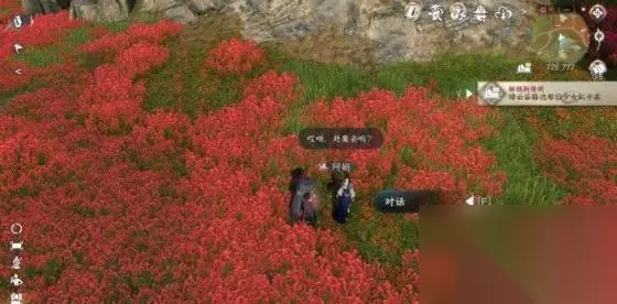 四、绯云谷 【有花堪折佳偶天成】 磁州728.777处与NPC“阿娟”对话,获取“油菜花环”,杭州759.1064处向NPC“黑路双”提交“油菜花环”,获取“一品券”,任务奖励3点剧情点,2点风云令和2个绑玉。