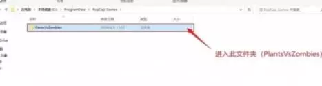 3、点击【PopCap Games】文件夹后,接着打开里面的【PlantsVsZombies】文件夹。