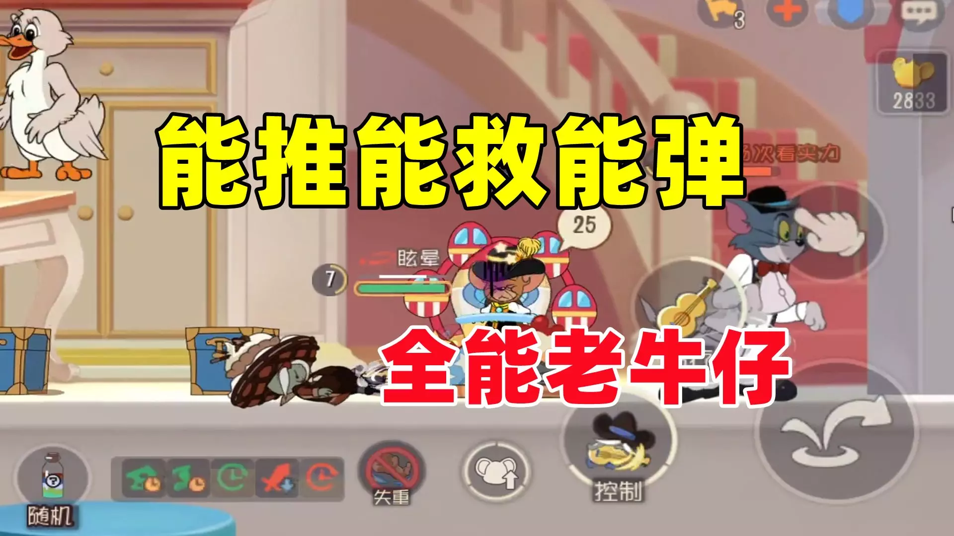 这是一篇竞技游戏分享帖,作者表示自己沉迷杀戮尖塔,不教学猫和老鼠手游角色佩克斯,图中展示了猫和老鼠手游的实战对局画面。