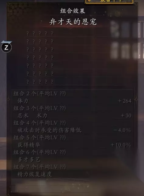图中仅为参考值,实际数值以等级为准 以及弁才天套装(6个即可)。多才多艺:使用不同武技攻击敌人后会提升攻击力,效果最多叠加9层。弁才天的提升大约是素盏呜尊的一半。