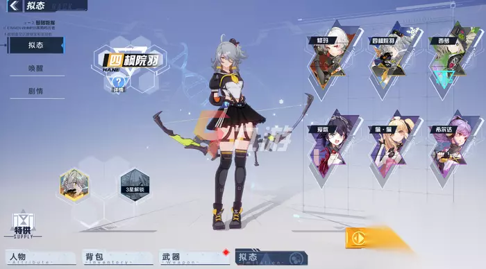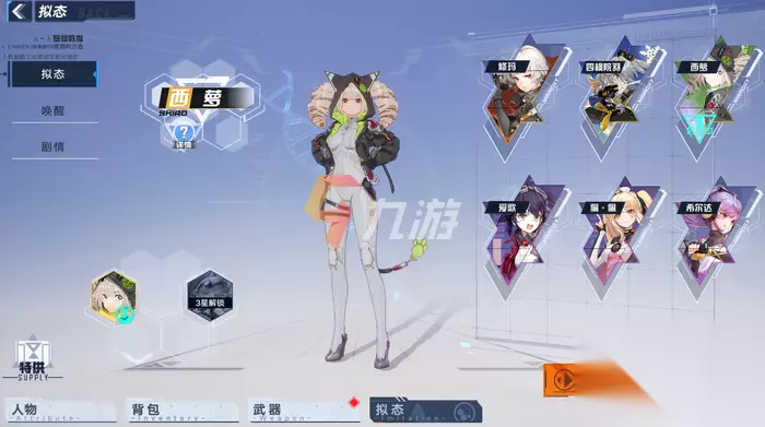 拟态角色介绍 修码:V2熔驱盾的拟态,我们会在故事剧情中遭遇到她,性格十分的坚毅,穿着皮裤,看上去非常的干练。 四枫院羽:冰风之矢的拟态,非常强力的冰系弓箭,外形十分的可爱和性感,大家感兴趣的话,还是十分值得获取的。 西萝:环海轮刀的拟态,外形十分的可爱,有猫耳朵和猫尾,特效十分的炫酷,喜欢的小伙伴千万不要错过!