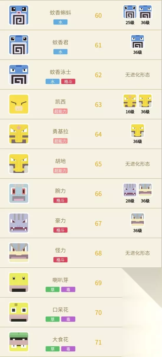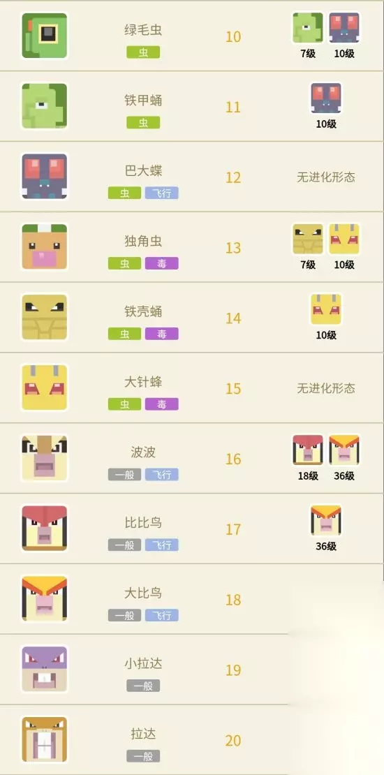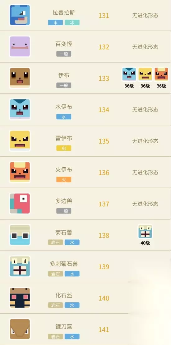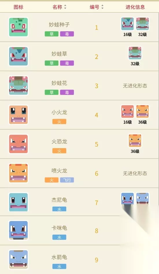 下面给大家带来的是《宝可梦大探险》全精灵进化图鉴,为大家介绍151个方可梦的进化等级和形态,一起看看吧!