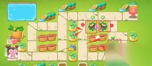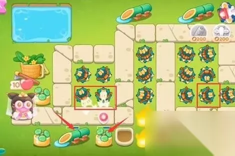 《保卫萝卜4》白萝卜传奇第42关无伤通关攻略 通关步骤 1、开始时,在此处放置一个多重箭,瞄准左边的障碍物,然后在下方相同的位置再放置一个多重箭。当上方的多重箭清除障碍物后,再次放置多重箭,这三个多重箭将能攻击箭头所示的几个方向的障碍物。