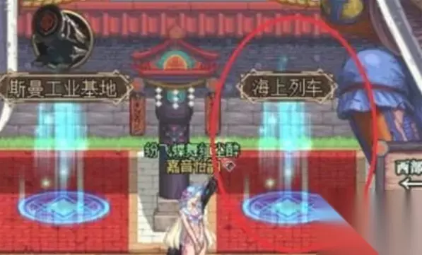 3、一直往右走,会看到放在一起的两个传送阵,从右侧的【海上列车】走。