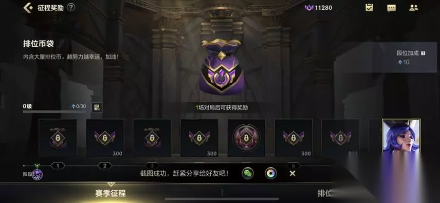 赛季征程系统将分阶段开放,召唤师在提升赛季征程等级的过程中可以获得大量排位币,可用于排位商城兑换队伍加成卡、回城特效、表情、家园守卫、多款姿态以及光耀之刃·泰达米尔皮肤等奖励。 同时,召唤师还可通过赛季奖励、段位提升额外获得排位币。(首次冲击段位将获得大量额外的排位币) 小编总结
