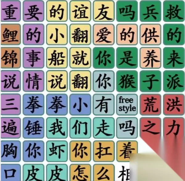 在汉字找茬王游戏中,每一个关卡都有着一个主题,根据关卡主题以及主题条件我们才能进行关卡的破解,但找老梗3这一关有着一定难度,不少小伙伴都没过关,那么汉字找茬王找老梗3怎么玩呢?接下来就让我们一起来看看汉字找茬王找老梗3关攻略吧。 汉字找茬王找老梗3过关攻略 爱的供养、友谊的小船说翻就翻、锦鲤、洪荒之力、重要的事情说三遍、你有freestyle吗、小拳拳锤你胸口、皮皮虾我们走、你是猴子派来的救兵吗、你怎么扛着品如的衣柜。