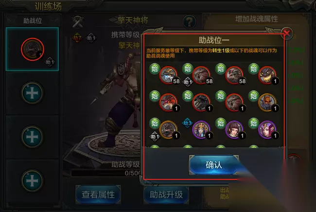 点击助战加号英雄们就可以放置满足要求的助战战魂啦,这里的选择是非常多的。不过涉及到后续的培养玩法所以推荐选择橙色或红色为主,如果对后续养成很有信心的英雄也可以选择更高品质金色。
