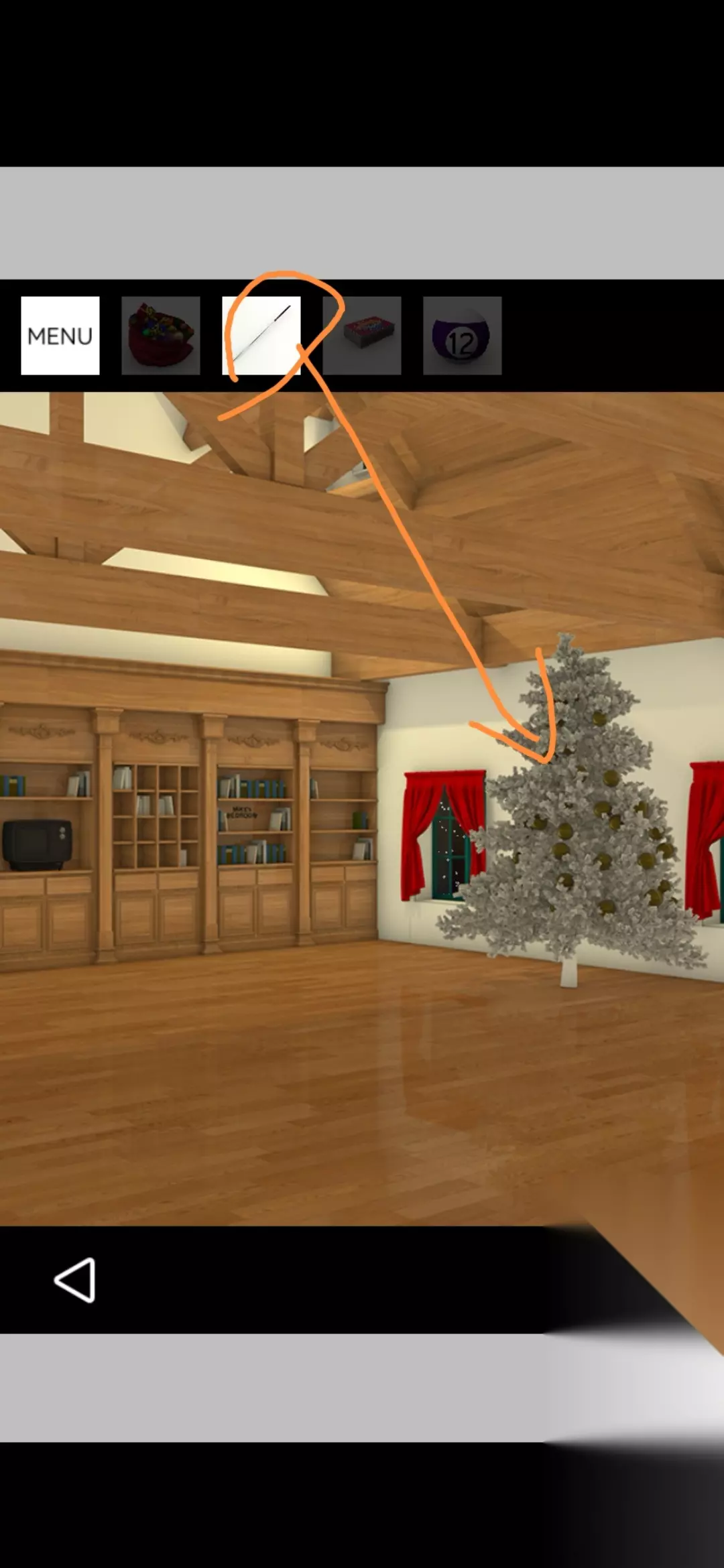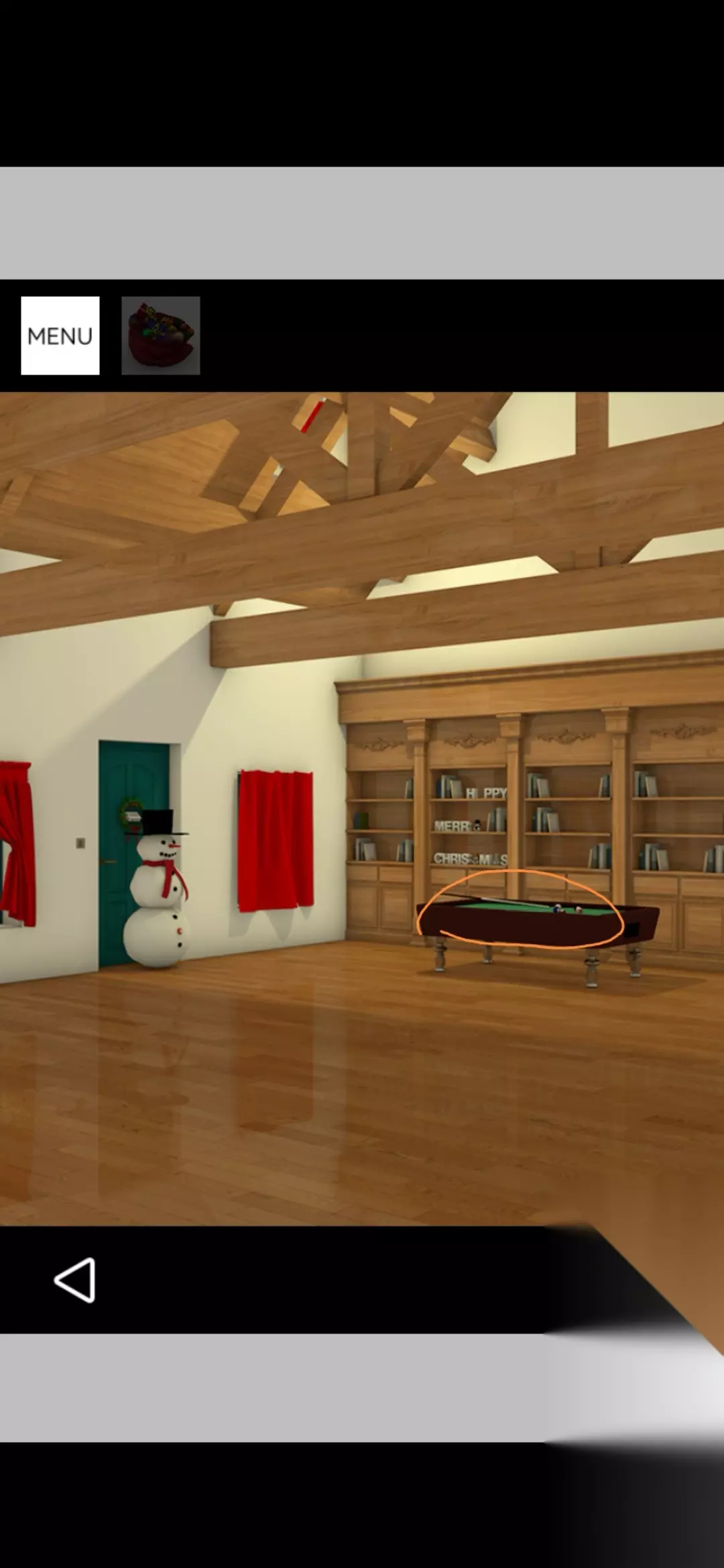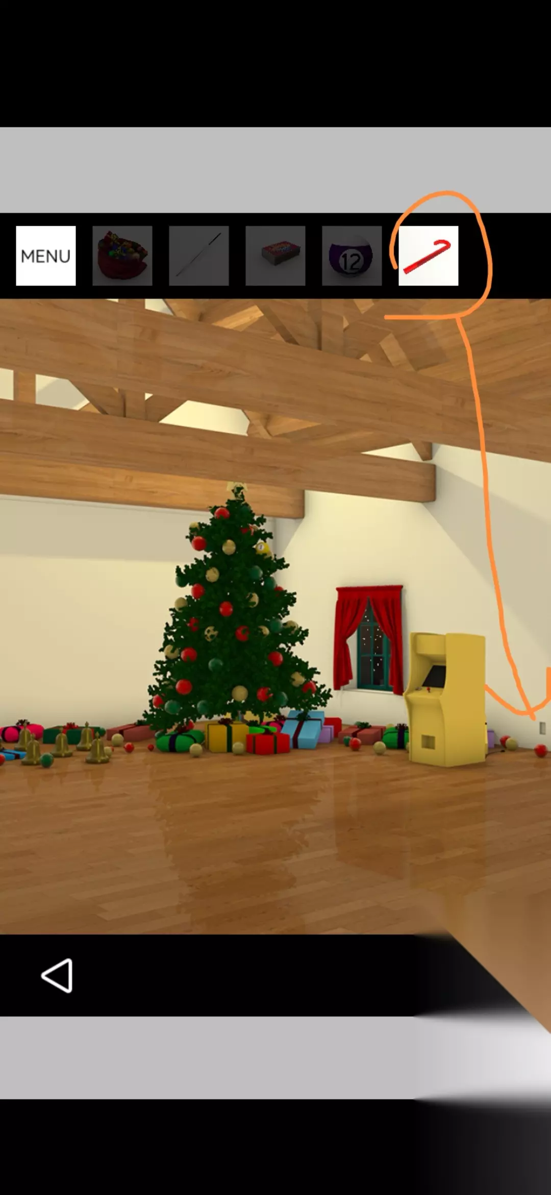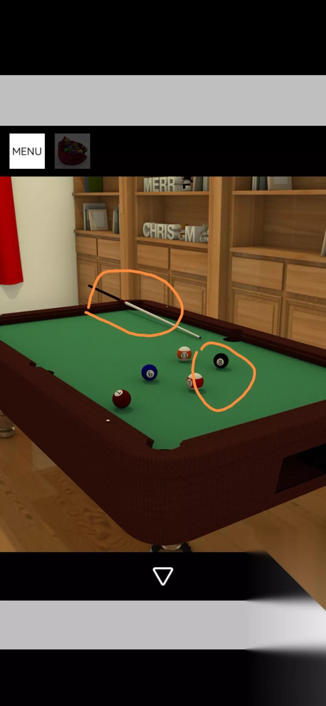 用桌球杆点击银色圣诞树的顶端得到金币