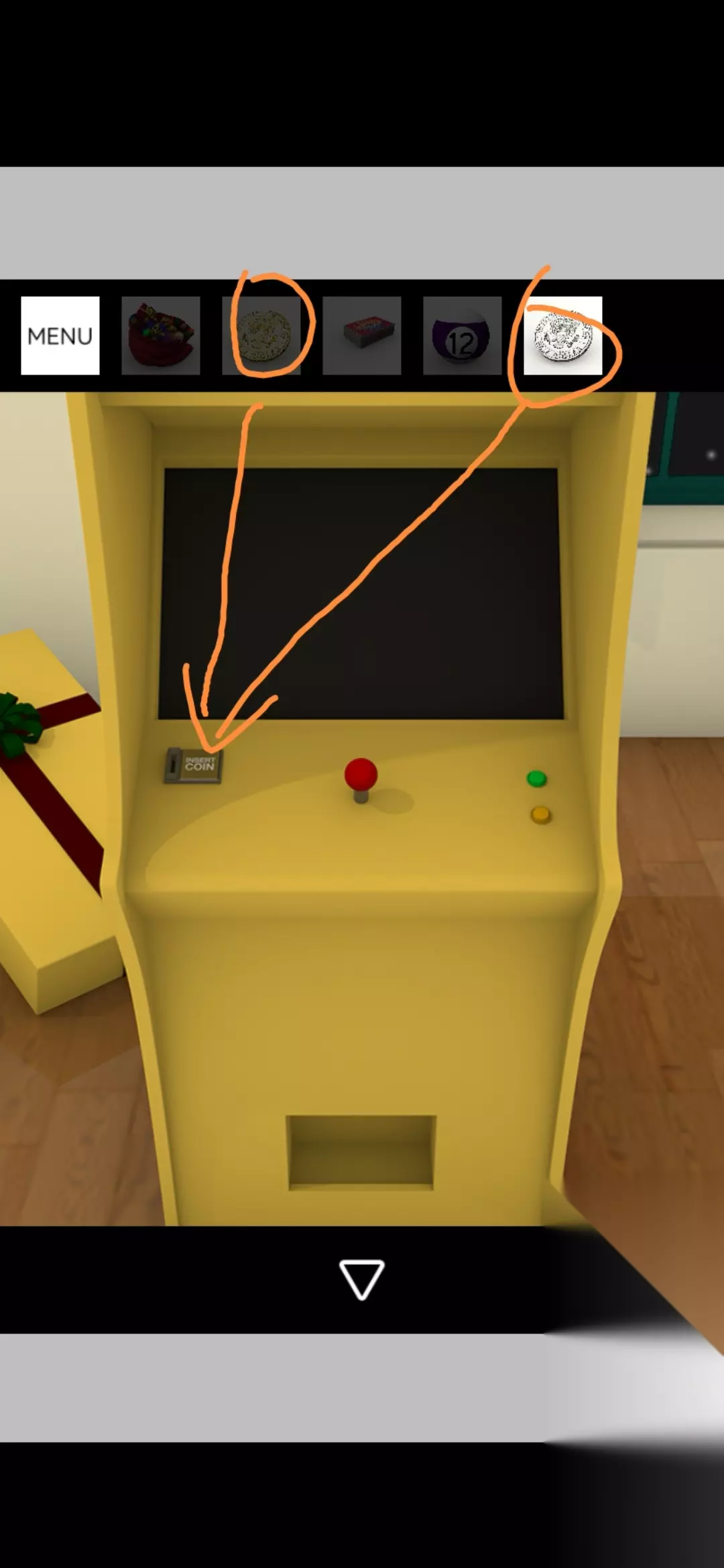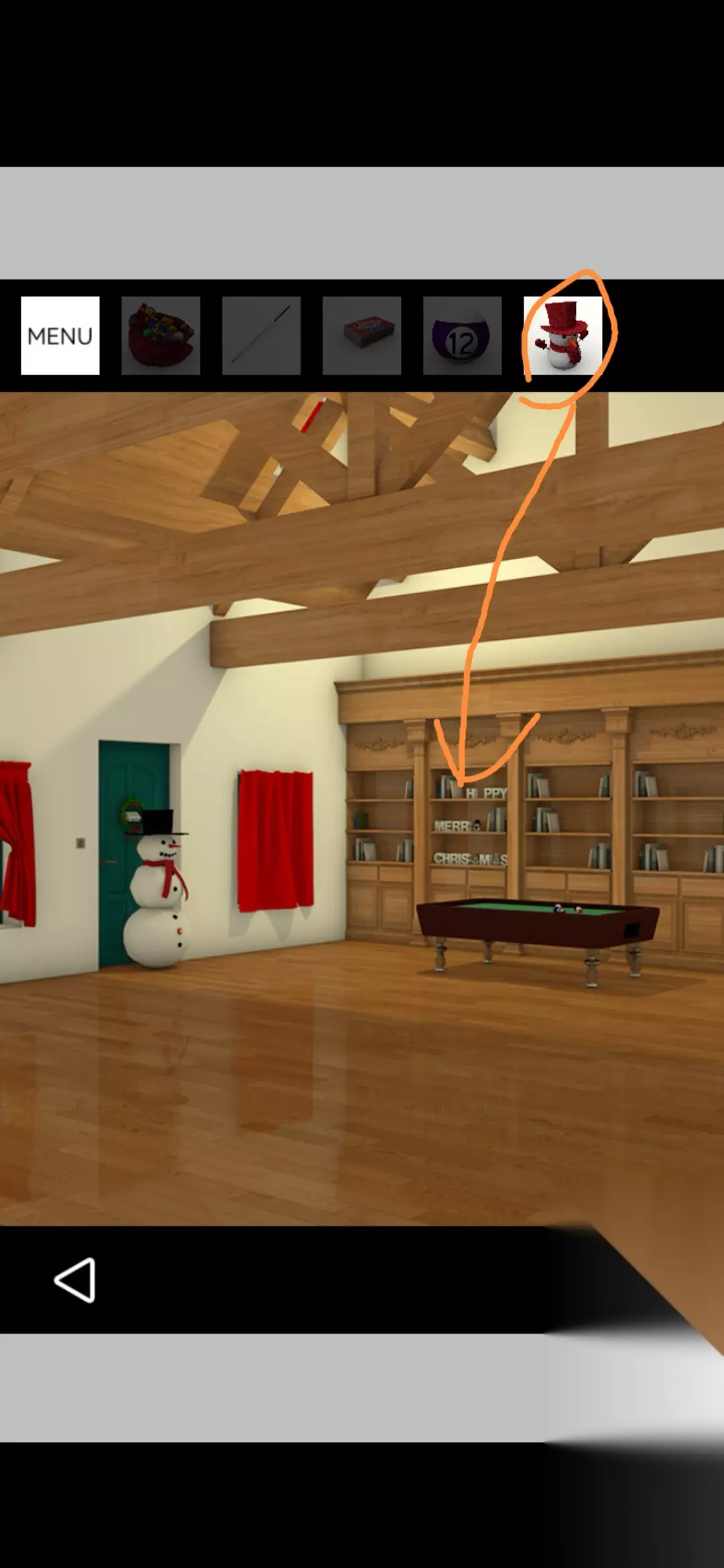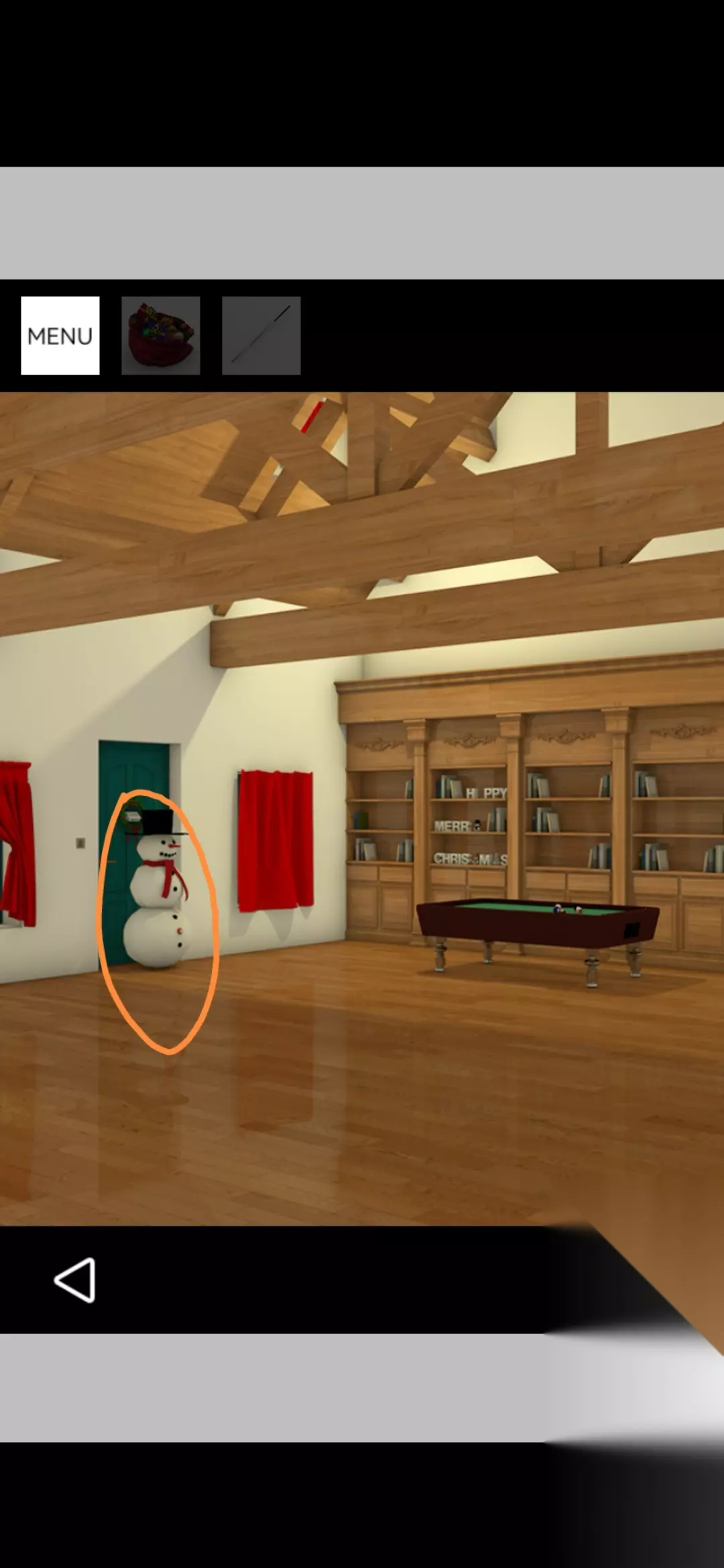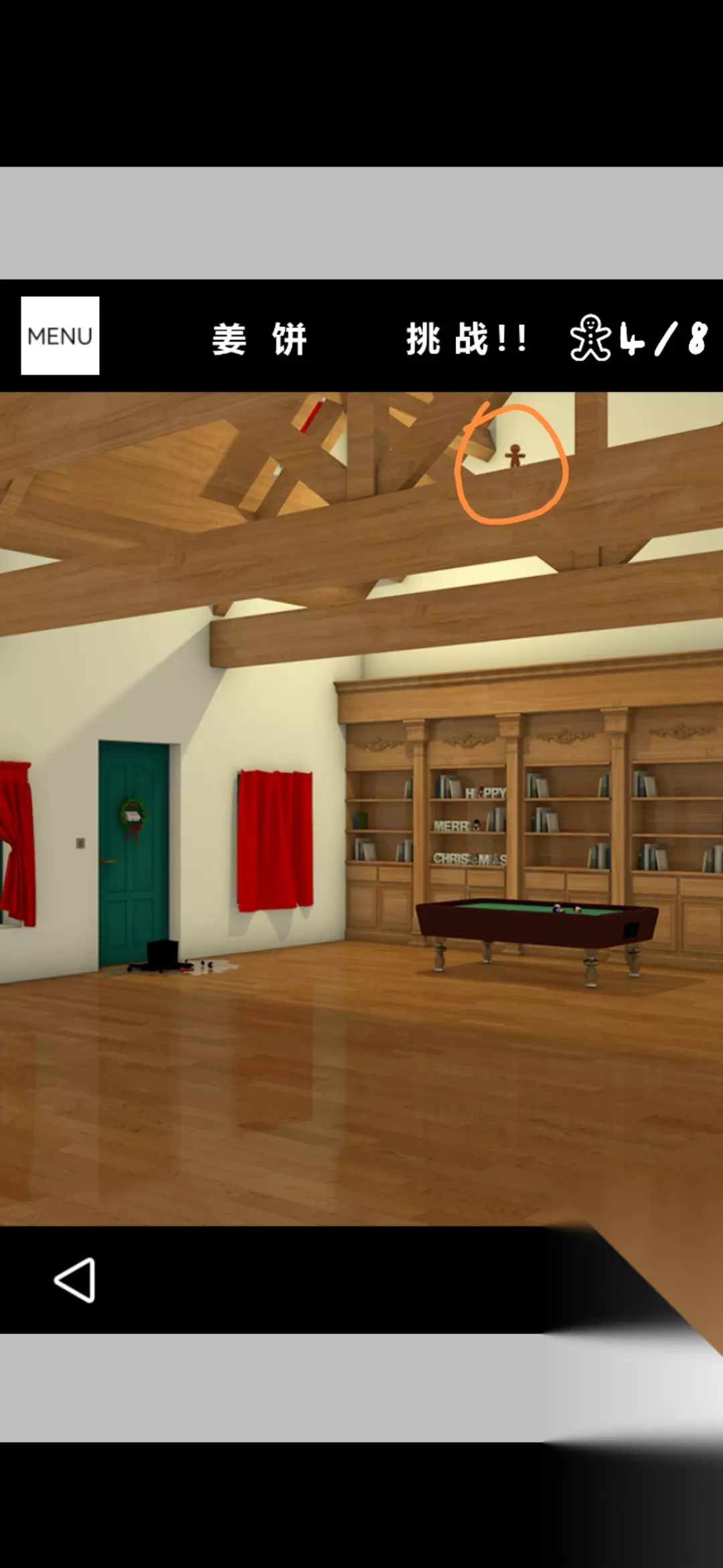 用桌球杆点击银色圣诞树的顶端得到金币