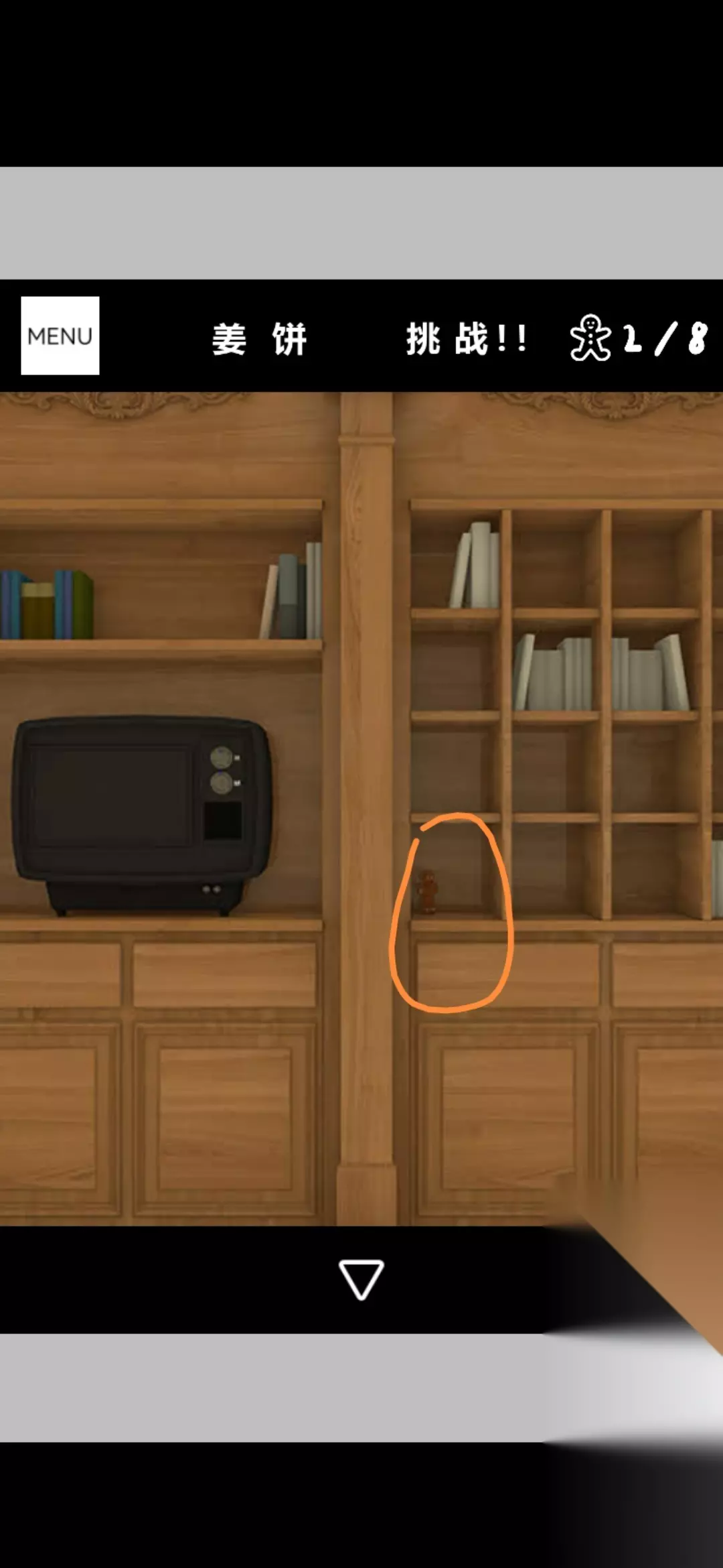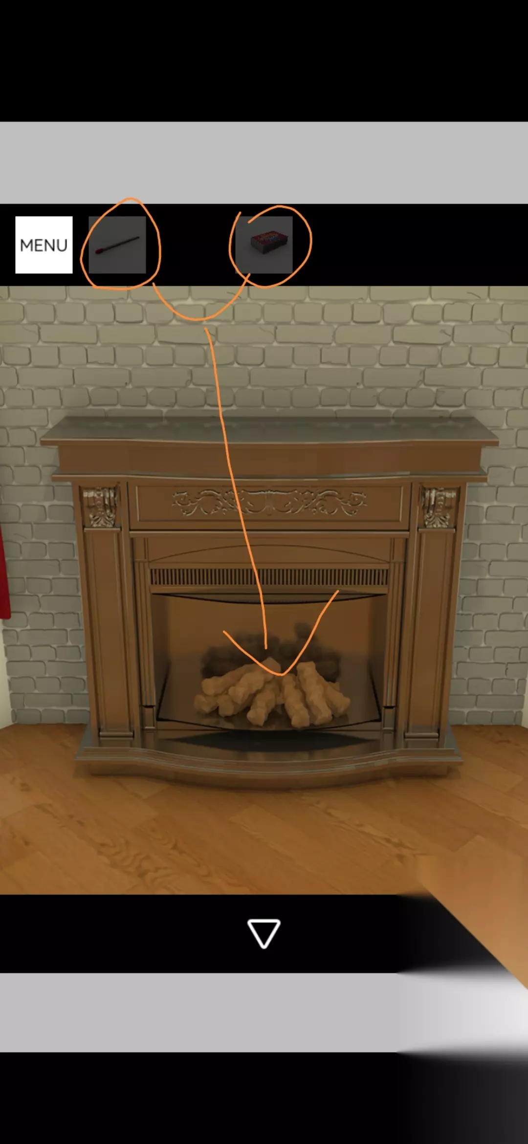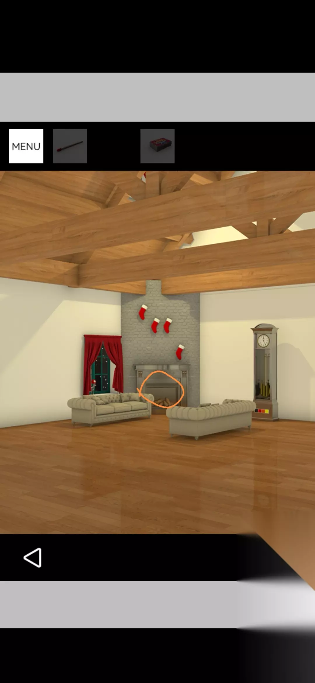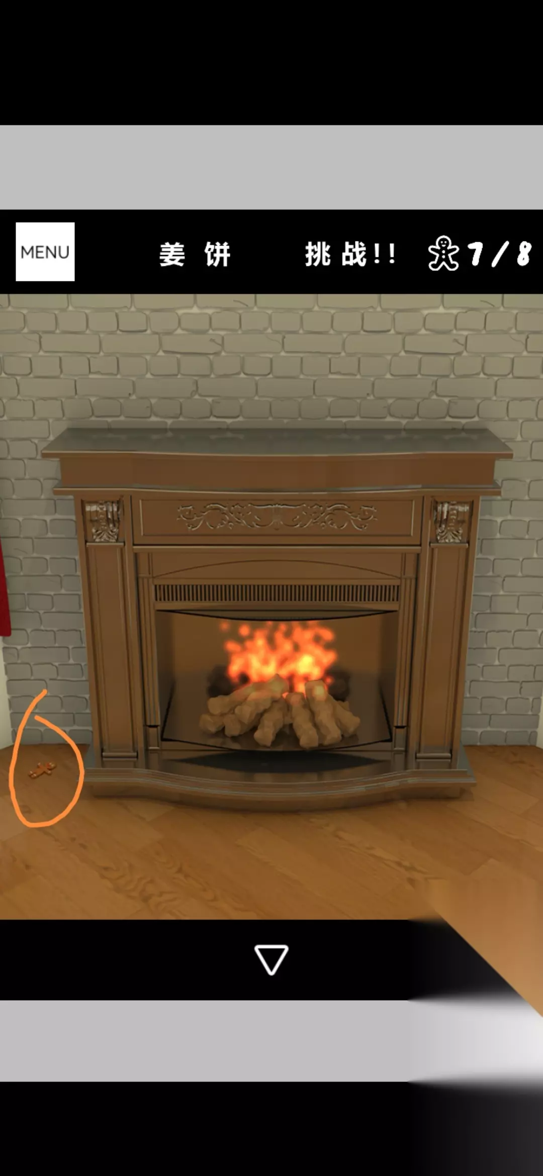 点击电视旁边书架的书得到提示,根据提示将壁炉上方的红色袜子调整为如图,打开壁炉锁