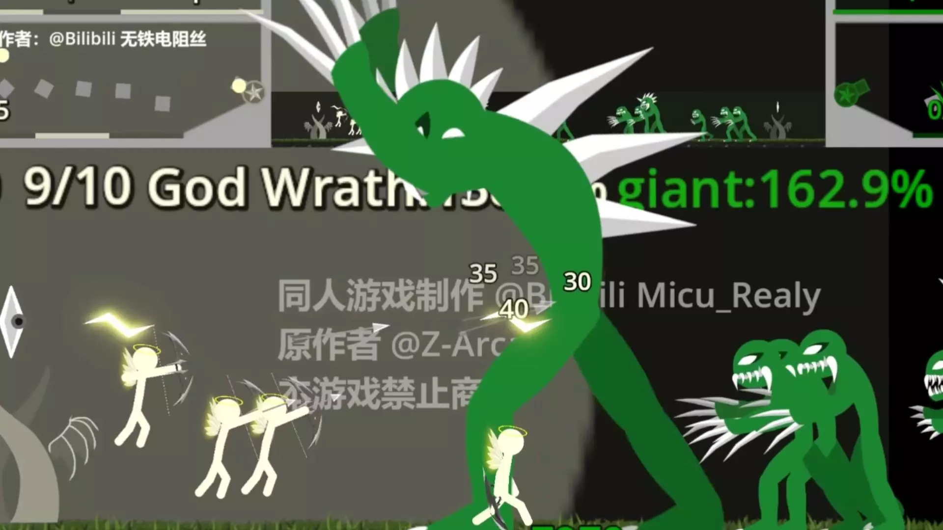 这是火柴人Z-Arcade经费自费版UPF先行版的同人游戏制作分享帖,展示了游戏内战斗界面,该游戏由多位创作者分工完成程序框架、种族设计与代码制作,发帖者求教骨骼动画相关内容。
