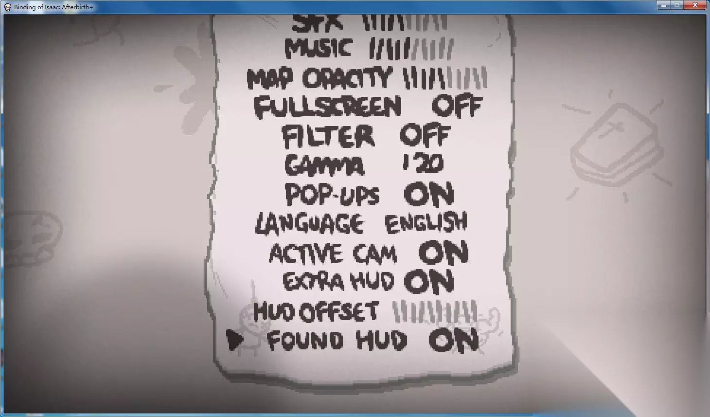 一切弄好后就可以玩了,可以看到不再锁成就了。 但这个方法有个弊端,就是你不知道该删哪些东西来关闭mod,这时你有两种方法 一是直接删掉以撒游戏的resources文件夹,然后验证完整性即可。 如何验证完整性在上面的浏览本地文件的截图所画框的上面 二是参照mod文件夹里的文件,在以撒游戏resources文件夹里删掉同名文件。 不过这种方法特别麻烦,删错了也是问题,所以一般用第一种方法就好了。 另外补充两点: 订阅mod后需要开启游戏才会在存档文件夹里生成mod文件。 左侧属性需要在设置里开启“FOUND HUD”才能显示。