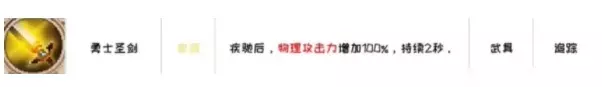 2、【勇士圣剑】:疾驰后,可以增加100%的物理攻击力,持续2秒。