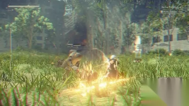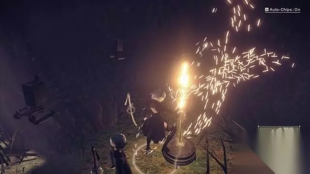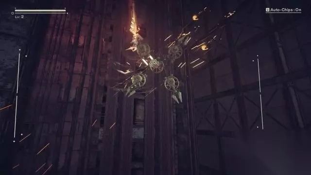剧情:9S驾驶机甲出现并且用魔法控制飞弹反射至锯齿巨人身上,可是锯齿巨人还未完全被击败,他对2B的偷袭被9S用躯体格挡下来,不幸的是令到9S与机甲分离,甚至还丧失了左臂和左腿。 2B感应到9S的黑匣子信号,她要去救9S。