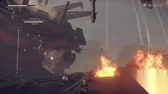 剧情:经过9S在空中俯视观察发现指挥官所给出的地点有误,应该是情报有误,与此同时一台锯齿巨人便出现在2B的面前(之前在空中发射射线的元凶就是他)。