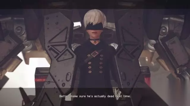 剧情:2B和9S趁机捅杀了单眼男,可是单眼男很快得到重生,而且身上毫无伤痕。 与此同时机械兵的巢穴开始倒塌,2B和9S只好先行撤退。
