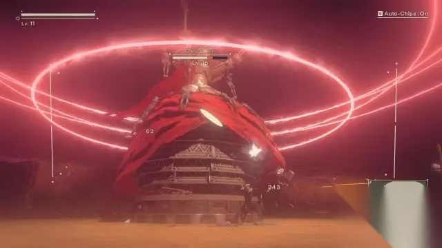 step13.第二回合,机械歌姬的裙子会变成两手两足的机械怪物,这时候她主要是进行近战攻击,与她保持距离让Pod射击机械歌姬即可。