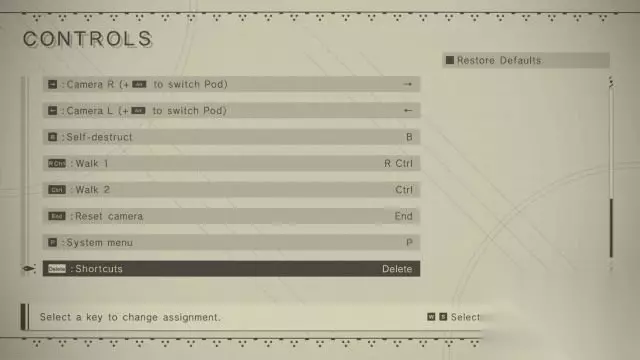 PC版基本键位 WASD键:移动(双击躲避); R键:自动奔跑; 空格键:跳跃; E键:行动; 鼠标左键或/键:轻击; 鼠标右键或\键:重击; Q键:切换自动控制; shift键:发射; 1键:Pod程序; 2键:开启或关闭电筒; 移动鼠标或十字键:控制镜头; Ctrl键:切换慢行; end键:重置镜头; ECS键或P键:系统菜单; delete键:快捷栏;