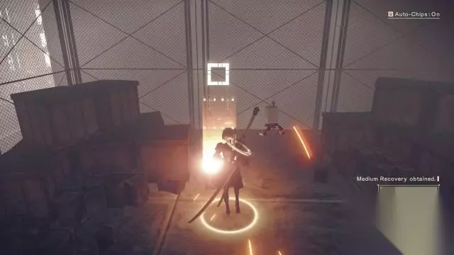step7.落到地面以后往沙漠方向跑去,在桥底(此桥是通往序幕中的工厂)下击退三名机械兵就可以解救一台自动贩卖机(游戏中叫作“接入点”)。 通过接入点2B可以进行存档以及查看邮箱的操作。 此时玩家可以在废墟城市四周游览顺别解救这些接入点,方便之后进行存档。