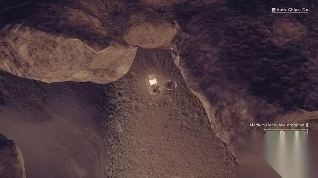 2B线-第一章:人类反抗军(沙漠) 第三节:沙漠地带 step14.在沙漠入口的丁字路口处,在高山中部可以找到一个窟窿跌落到地洞内。 地洞中央有一道锁上的门,在后期才能打开。 在这道锁上之门左侧拐角走去可以找到一个宝箱(5/9)。 跟随着任务目标的图标就可以走出地洞,在地洞出口看见天空的石台阶底层可以发现一个宝箱(6/9)。