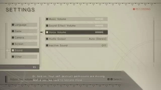 step2.在重启程序当中,此时进入到设置菜单。 先调整游戏的亮度,继而调整音量,接着是开启自毁模式,这时候2B就可以完全苏醒过来。 在与9S的对话当中,她确定9S已经丧失了之前的记忆。