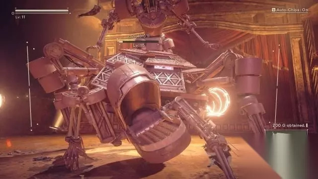 step9.到达歌剧院后从列车上跳落,在大厅内2B会发现一些人造人的尸体,发现他们就是在行动中失踪的小队成员。 从楼梯跳落就开展BOSS战。