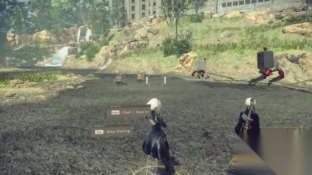 step8.在反抗军营地入口对出的小河上可以进行钓鱼,按回车键让Pod进行钓鱼,待一段时间过后可以再按一次回车键查看Pod的收获(一般时间越长才会有收获),停止钓鱼的话按ESC键即可。
