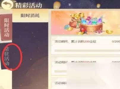 2、进入后,滑动至左侧菜单栏,选定【常驻活动】板块。