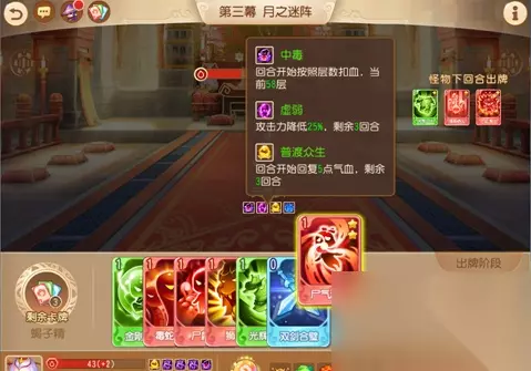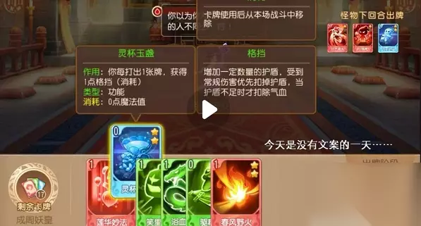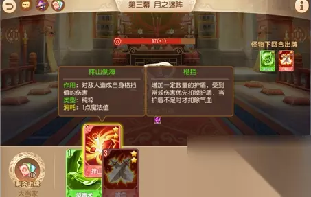 【特殊事件】: 小酒馆:随机抽牌加入卡组 神秘宝藏:+250古镜币(概率得诅咒牌) 藏经阁:打坐+10生命上限 拦路强盗:(交钱→50古镜币换个法宝)(强行闯关→得3个法宝/损失100古镜币) 【实战思路】 首先,对方下回合出的卡牌是可见的,所以我们可以依靠这个决定自己本回合的出牌方向,尽可能地做到出牌效益最高。 例如,下回合怪物都是以护盾为主,没有伤害牌,那么我们这回合就不需要再出护盾了,直接勐丢输出牌完事。若下回合怪物的输出较高,则要记得搭配一下护盾牌,保证自己的血量,避免翻车。 小贴士:如果状态不好,可以保存退出重新开始刷第一回合的牌……