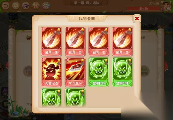 1、大当家——输出流 法宝:战鼓(物伤+1)、飞剑(概率暴击)、干坤玄火塔(第一张返蓝)、神行飞剑(3个横扫) 嗜血、横扫都是单张高伤害的卡牌,但是同时耗蓝较多,需要配合后发减耗以及大当家的火塔首张返蓝,仙灵店铺回蓝持续输出也挺舒服。配合为官之道的易伤效果更佳。如果能解锁时之月(造成伤害,且下张物攻卡不耗蓝)对于走输出流的大当家那一定是如虎添翼。 牌组:后发+为官之道+横扫千军+破釜沉舟+嗜血+翩鸿+单刀(没蓝的时候如果手上有仙灵店铺,用一下继续输出)