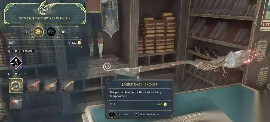 紫衫编织扫帚 在霍格莫德的「旋转女巫体育必需品」中花费600购买。 月之梦扫帚 在霍格莫德的「旋转女巫体育必需品」中花费600购买。 霍格沃茨家用扫帚 在霍格莫德的「旋转女巫体育必需品」中花费600购买。 风灵扫帚 在霍格莫德的「旋转女巫体育必需品」中花费600购买。 商人购买 家庭古董扫帚 在费德罗特地区的旅行商人“普利亚·崔德维尔”处花费2500购买。这个商人也会出现在费德罗特镇北部或南海沼泽区域。